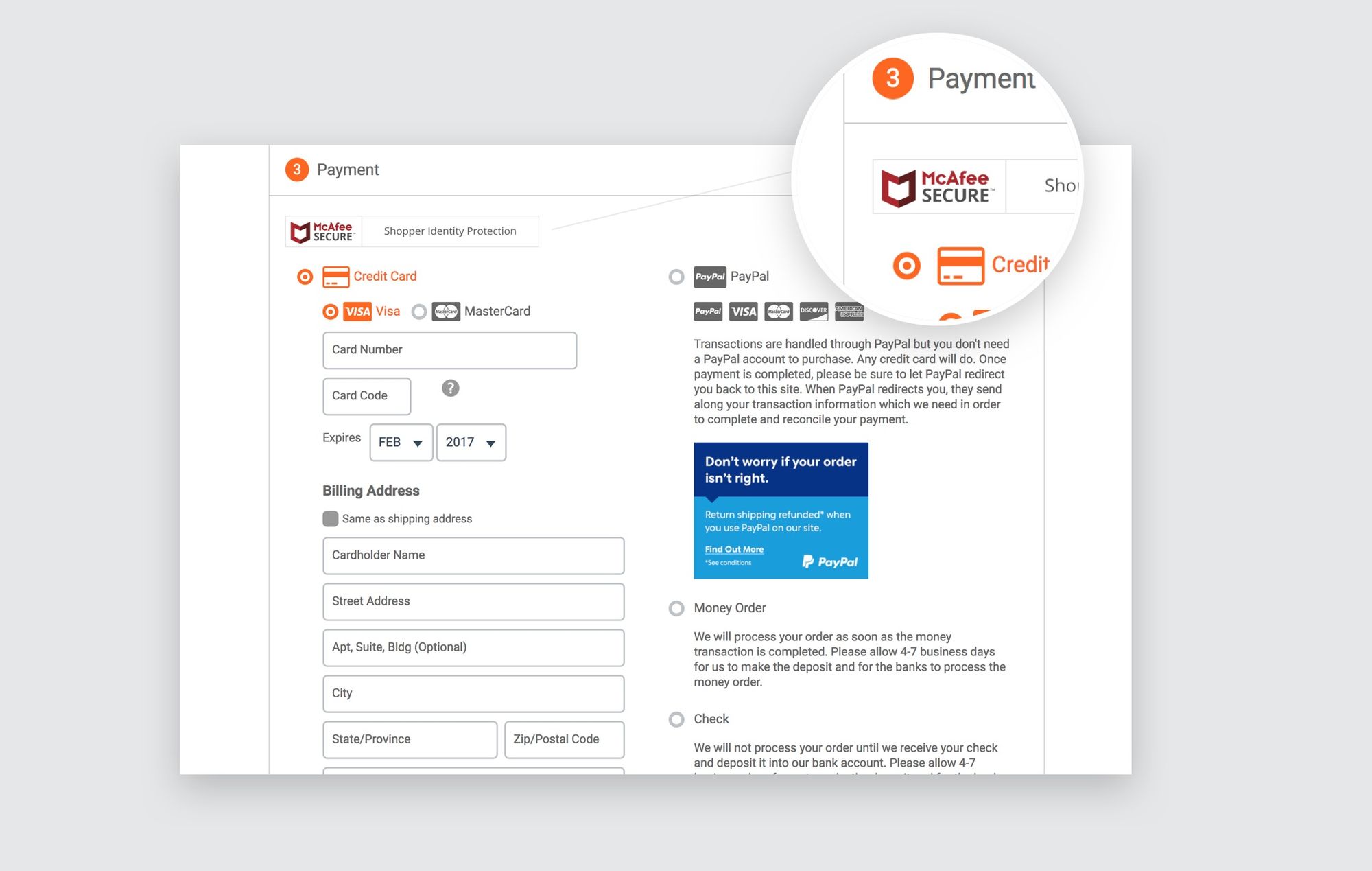 ...you'll see the McAfee SECURE trustmark. The constant presence of a well-known security brand reassures the most security-concerned customers that the site is trustworthy, and their personal information is secure.