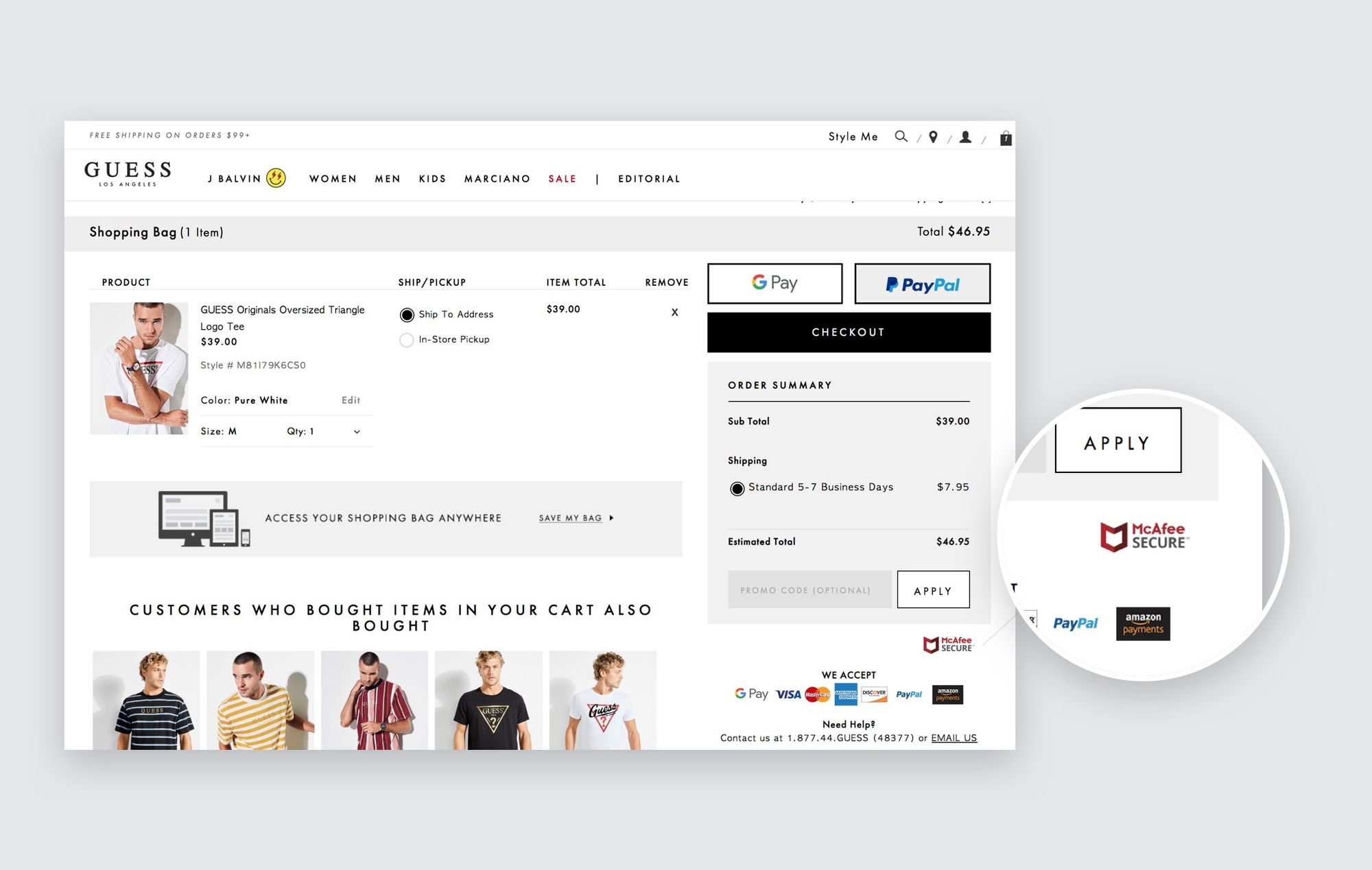 Another instructive example for trustmark placement is the site of Guess, the fashion retailer: