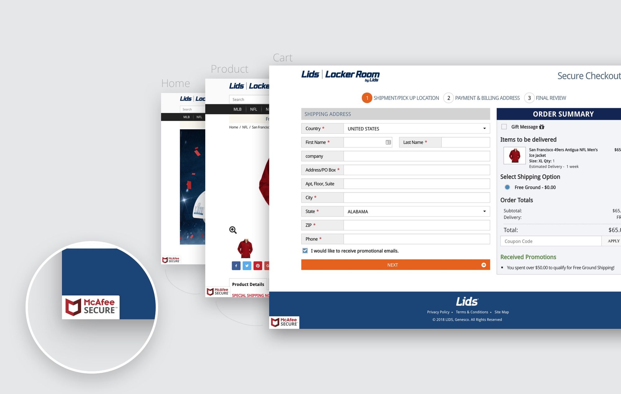 Take Lids, a site that sells fan athletic apparel, for example. Where ever you go on Lids, from its homepage to its product pages to checkout...
